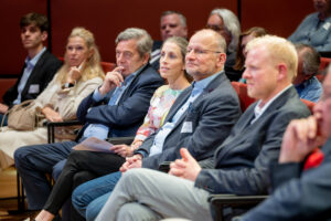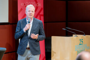 Botschafter Thomas Østrup Møller schilderte gestern Abend Dänemarks Ansatz bei den zahlreichen Herausforderungen und beantwortete Fragen zu Europas Sicherheit, Wehrhaftigkeit und Wirtschaft. Beim anschließenden Empfang konnten IHB Mitglieder und Gäste mit Botschafter Thomas Østrup Møller und Mathias Sonne, Kommunikations- und Kulturchef der Botschaft, sowie mit mehreren Botschaftern anderer EU Länder bei einem Glas Wein die Rolle Dänemarks in der EU weiterdiskutieren.