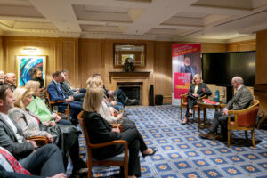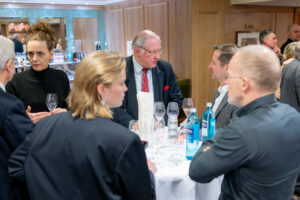 Beim anschließenden Empfang hatten alle Mitglieder und Gäste bei Fingerfood und Wein Zeit und Gelegenheit, ins Gespräch zu kommen und sich zu vernetzen. Dr. Christoph Abeln stand Rede und Antwort und signierte gerne Exemplare seines Buches.